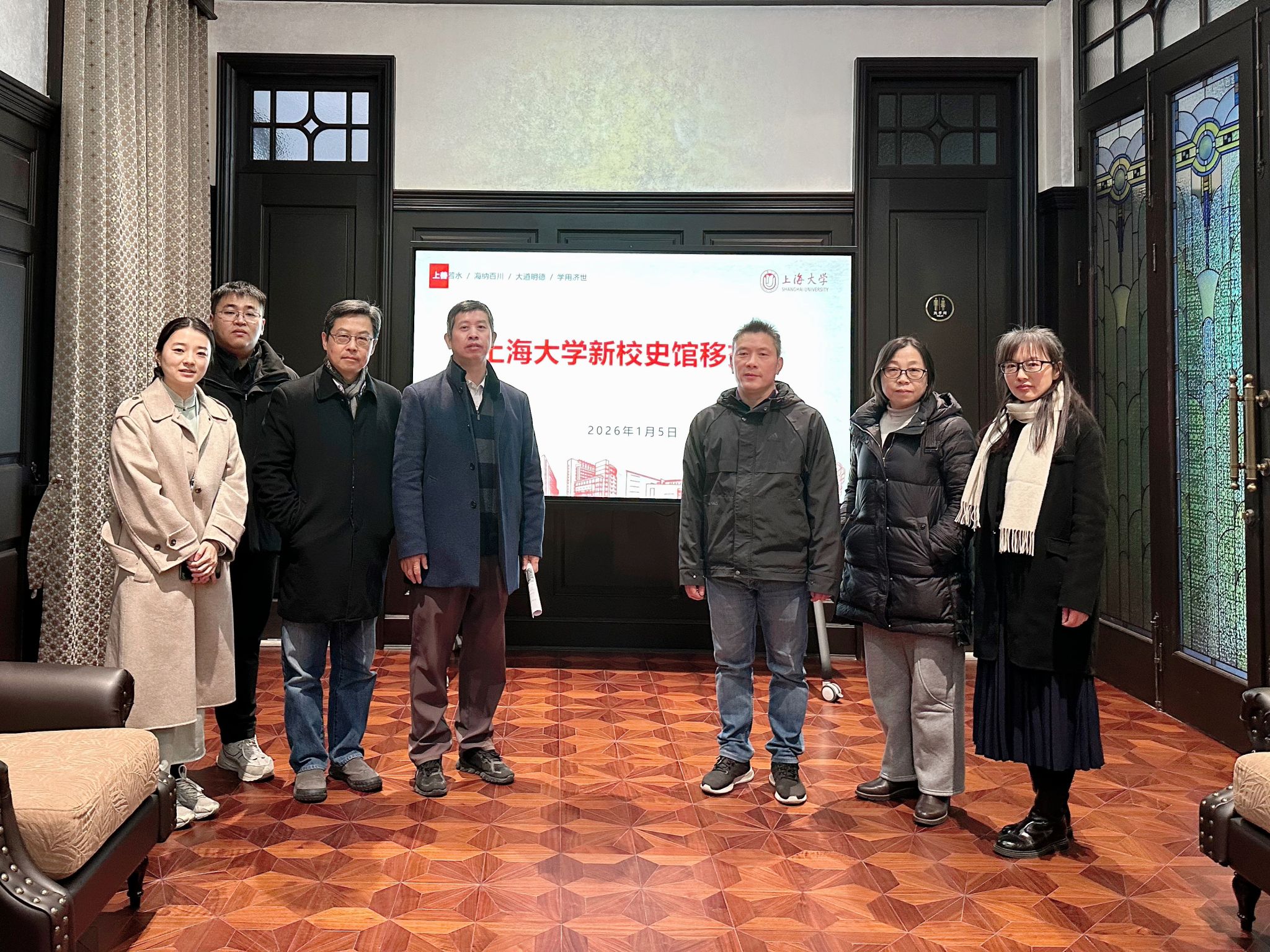 2026年1月5日下午,上海大学新校史馆移交会在新校史馆西摩楼二楼接待室圆满举行。上海大学图博档党委书记王远弟主持仪式,档案馆馆长卢志国、博物馆馆长李明斌以及档案馆办公室主任彭青莲、档案馆党支部书记纪慧梅、博物馆综合管理部主任梅海涛、博物馆馆员牛梦沉共同参与,见证这一展馆移交的重要时刻。 档案馆卢志国馆长介绍新校史馆筹建基本情况。上海大学新校史馆含“青云楼”和“西摩楼”两座展馆,分别于2024年6月19日、2025年9月6日相继建成开放。筹建过程中,档案馆严格遵循校党委统筹部署,围绕学校中心工作开展校史档案挖掘与新校史馆展陈建设,确保建成后的展馆兼具历史厚度与专业水准,成为具备校史展示、爱国主义教育与文化育人功能的校园地标。 与会全体人员进行新校史馆现场巡验。档案馆和博物馆双方代表老师核对《新校史馆移交签收单》,细致清点展品、展具、设备、固定资产和相关资料,确保每一件承载校史记忆的物品都得到妥善交接。核对无误后,由博物馆在移交清单确认签字。移交工作严格遵循规范流程,平稳有序完成。即日起,上海大学博物馆正式接管新校史馆的日常运营、参观接待及讲解服务等工作。