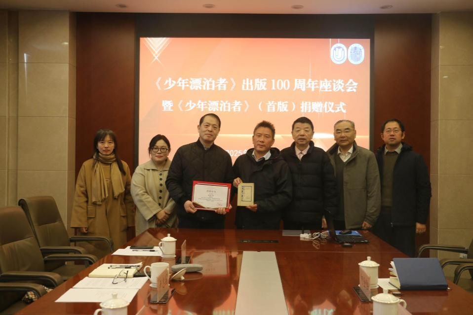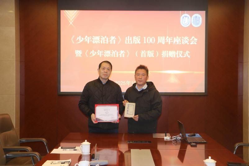 最后,詹洪阁先生表示,《少年漂泊者》首版原本回归上海大学,既是对百年经典的致敬,也是对红色文脉的传承。他透露自己正在筹备“中国好学生 —— 近代杰出人士求学印记史料展”,通过一百位杰出人物的学生证、毕业证、成绩单等原件藏品,让当代学子感受战乱年代先辈们“为中华之崛起而读书”的家国情怀。卢志国馆长表示此次捐赠不仅丰富了学校红色文献馆藏,为校史研究与党史研究提供了重要实物佐证,更将推动红色文化教育走深走实,是社会力量支持高校红色资源建设的重要体现。与会者一致认为,本次捐赠与座谈,不仅是一次文献的交接,更是一场跨越百年的精神对话。在《少年漂泊者》出版百年之际,重温这部经典作品,对于传承红色基因、培育时代新人具有重要的现实意义,共同守护好、传承好、弘扬好中华优秀传统文化与革命文化。